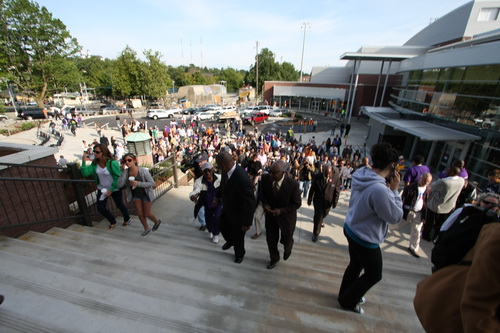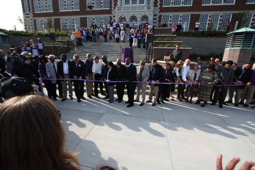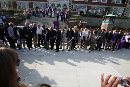 Hundreds of alumni, students, parents, and friends gathered to watch several dozen Garfield luminaries put scissors to ribbons